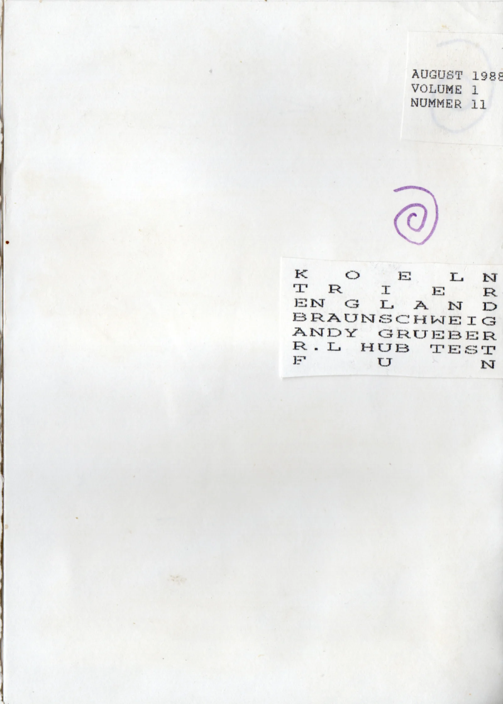 Decade 'Zine Nr. 11, August 1988
