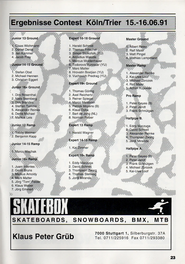1. Lauf Deutsche Freestyle Meisterschaft 1988 in Köln