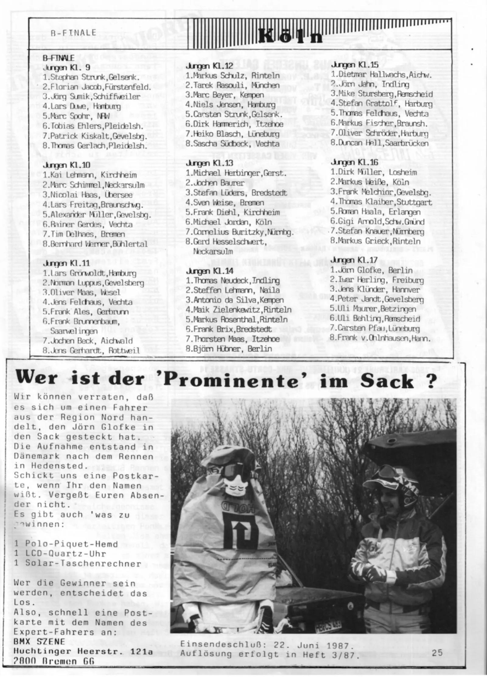 » 1. Wertungslauf zur Deutschen BMX Pokalmeisterschaft 1987 in Köln
