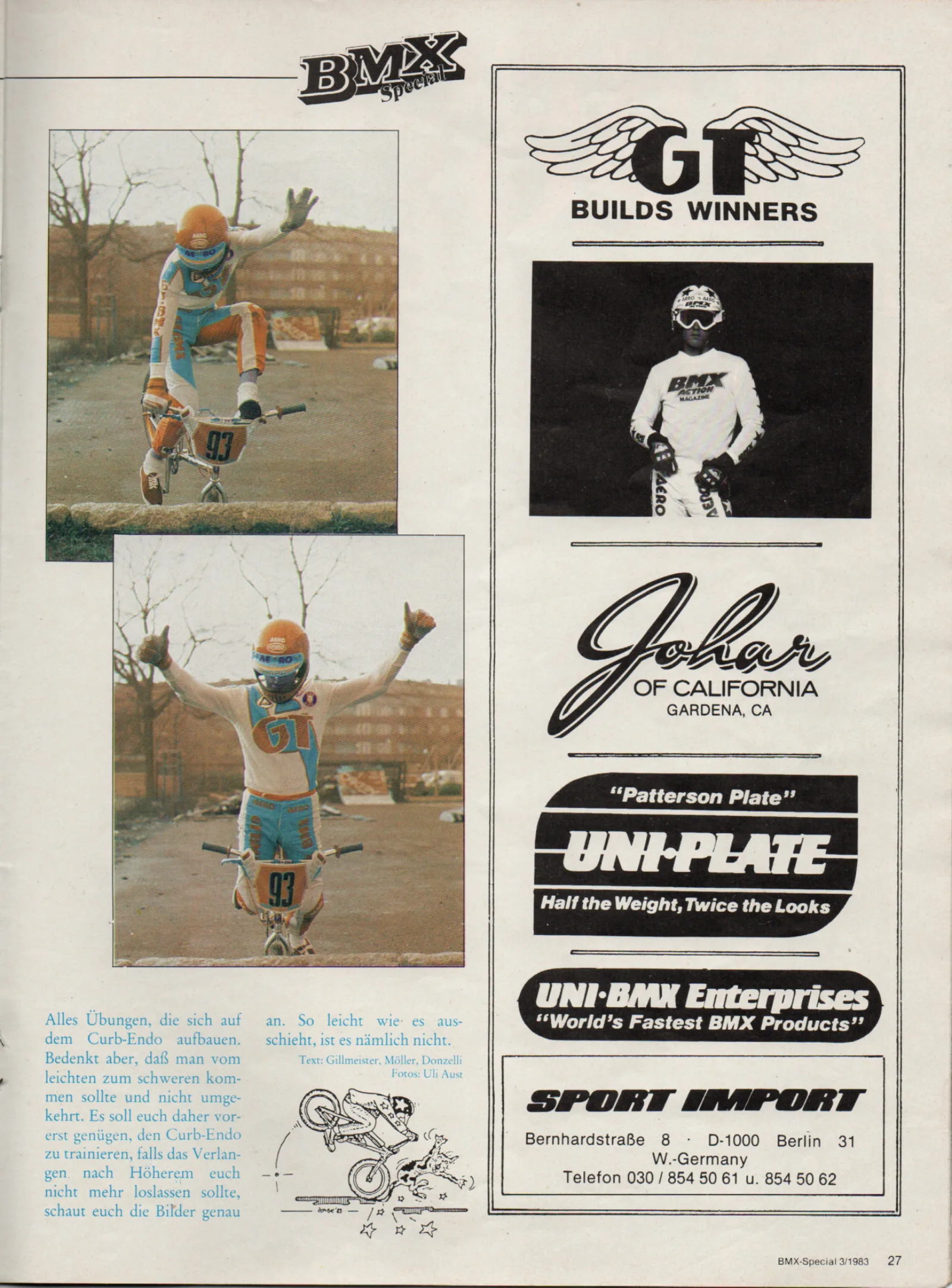 Elle ist ein Berliner BMX-Urgestein. Er kommt aus der Skateboard- und Rollerskateszene und war maßgeblich daran beteiligt, den BMX-Sport in seine damals vom Rest der Bundesrepublik abgeschnittenen Heimatstadt zu bringen. Er reiste auf abenteuerlichste Weise durch die Transitzone zu den ersten Rennen in Bremen-Vegesack und Remagen und stand zu Hause hinter dem Tresen von "Instant Funk", einem Rollerskateshop, dessen Besitzer er eigens überredete, BMX in sein Sortiment aufzunehmen. Aus "Instant Funk" ist der bis heute in der BMX-Szene sehr aktive Großhändler "Sport Import" hervorgegangen.
