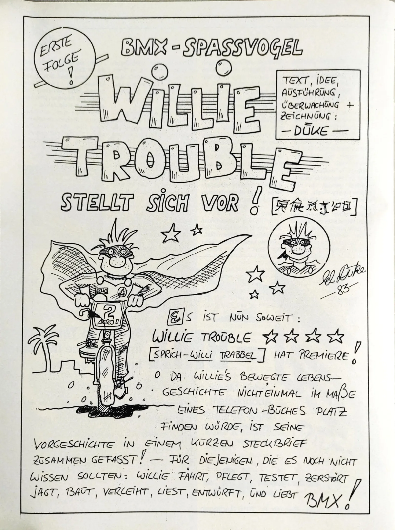 Als Aris Donzelli 1982 ein Redaktionsteam für das erste deutsche BMX Magazin suchte, stieß er mit Ekkehardt Teichrebers Hilfe auf Elle und seinen Freund Karsten Moeller, die fortan mit dem Fotografen Uli Aust (RIP) das Berliner "Büro" des BMX Special Magazines aus ihren Kinderzimmern leiteten. Mit seinen redaktionellen Beiträgen, seinem Fachwissen und nicht zuletzt seinen Comics bereicherte Elle das Magazin von dessen Geburtstunde an. Die Werke von "Zombie", "Duke", "El Duke" und später "Elle" haben sich ins kollektive Gedächnis der ersten BMX-Generation Deutschlands eingebrannt, genau wie die Instant Funk-Werbungen oder seine Beiträge im "American Sports"-Magazine.