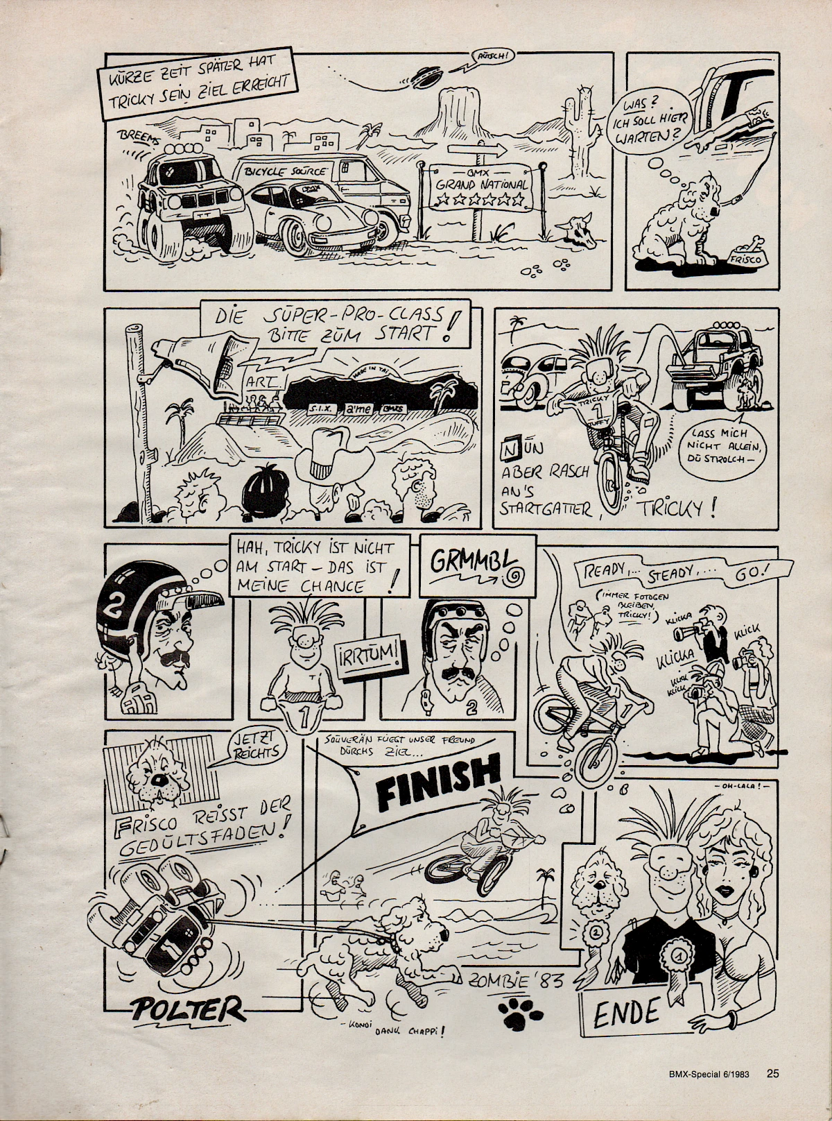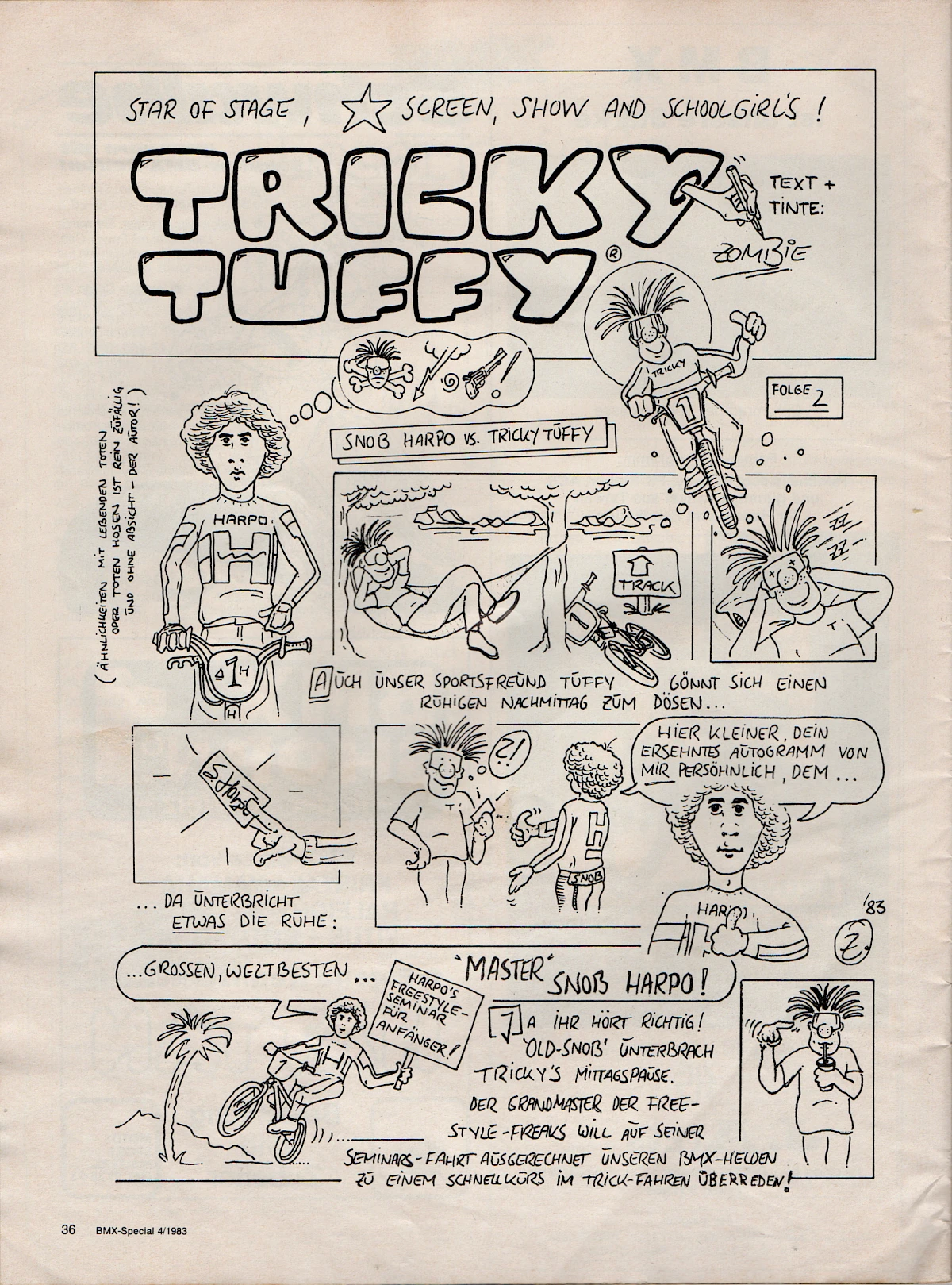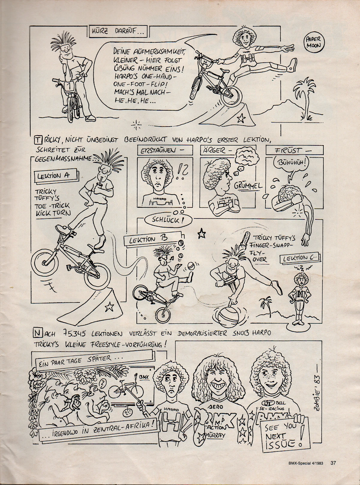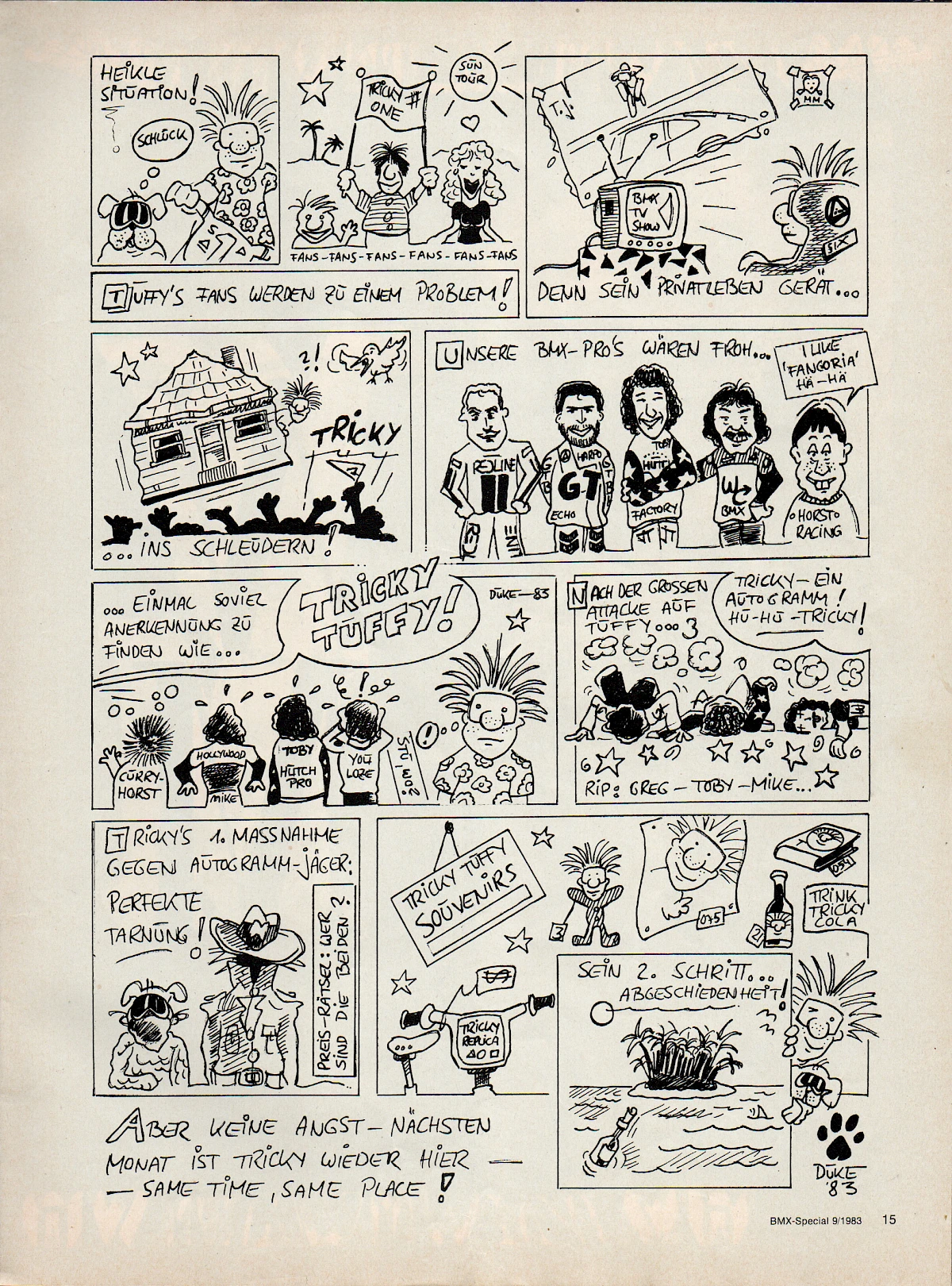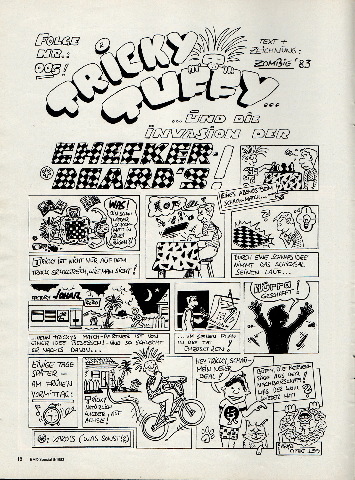 When Aris Donzelli was looking for an editorial team for the first German BMX magazine in 1982, he came across Elle and his friend Karsten Moeller with the help of Ekkehardt Teichreber, who from then on ran the Berlin "office" of BMX Special Magazine from their childhood bedrooms together with photographer Uli Aust (RIP). With his editorial contributions, his expertise and not least his comics, Elle enriched the magazine from the very beginning. The works of "Zombie", "Duke", "El Duke" and later "Elle" are etched in the collective memory of Germany's first BMX generation, just like the Instant Funk adverts or his contributions to "American Sports" magazine.