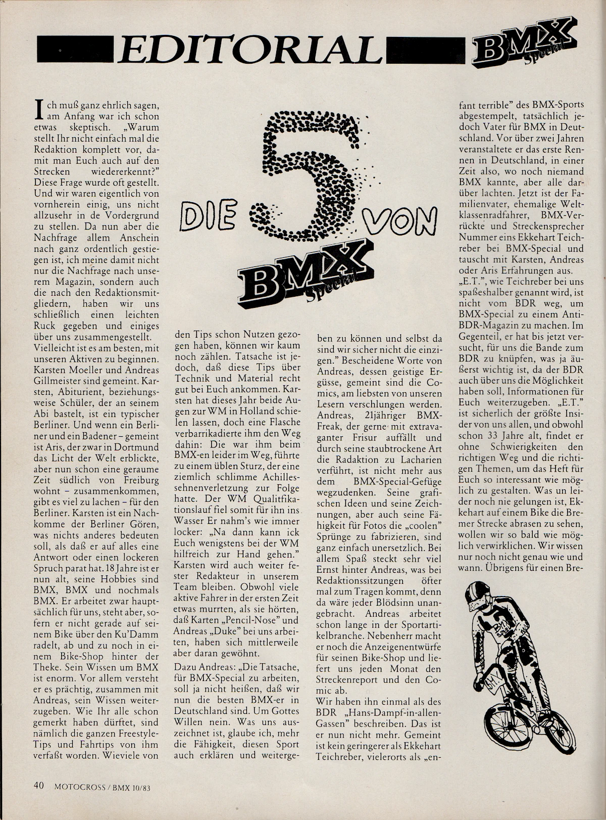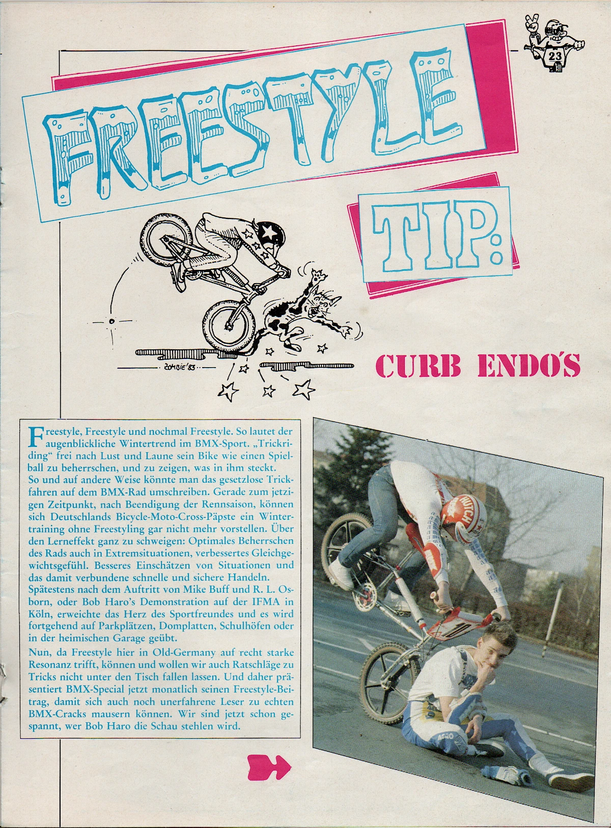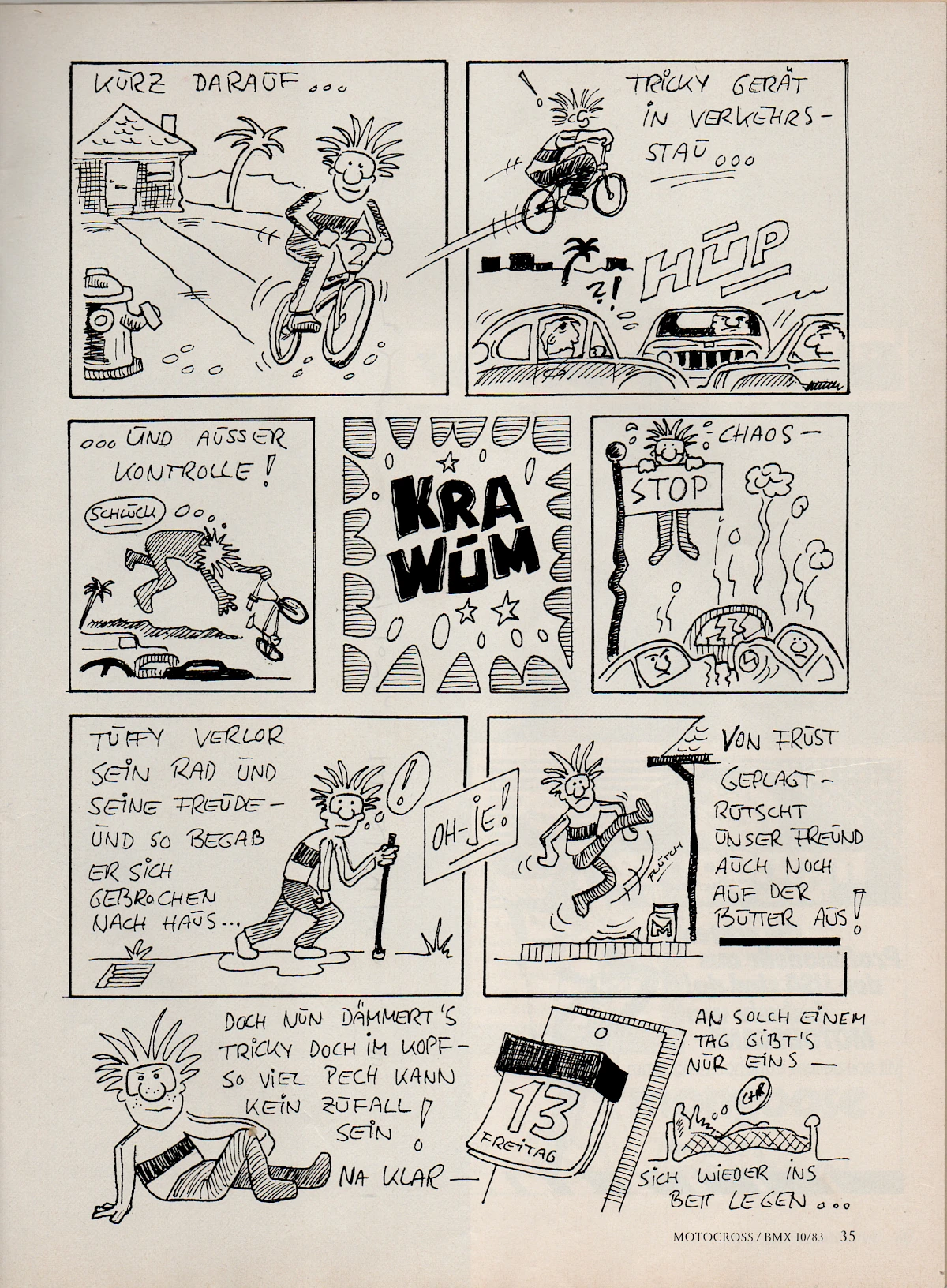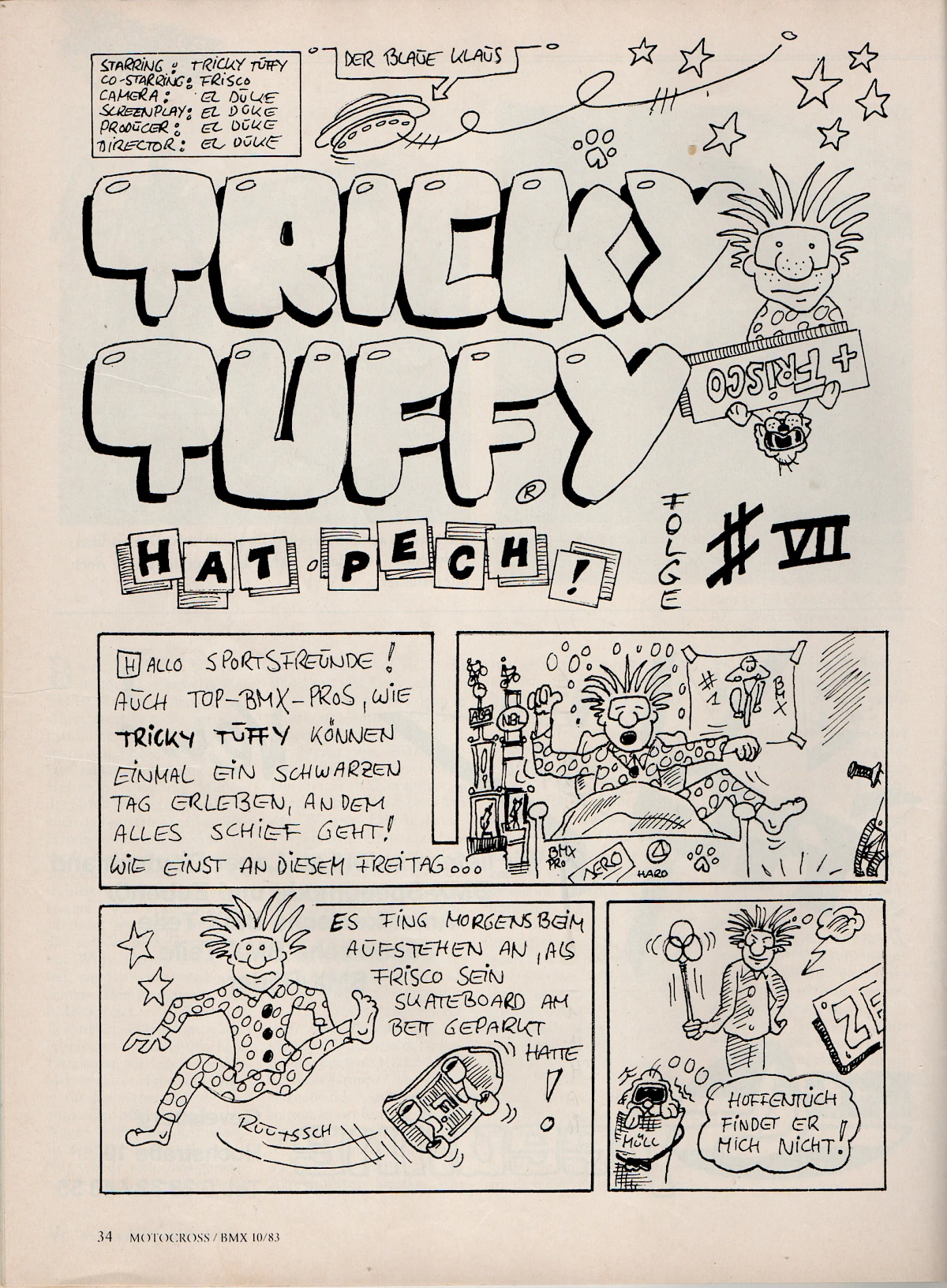 When Aris Donzelli was looking for an editorial team for the first German BMX magazine in 1982, he came across Elle and his friend Karsten Moeller with the help of Ekkehardt Teichreber, who from then on ran the Berlin "office" of BMX Special Magazine from their childhood bedrooms together with photographer Uli Aust (RIP). With his editorial contributions, his expertise and not least his comics, Elle enriched the magazine from the very beginning. The works of "Zombie", "Duke", "El Duke" and later "Elle" are etched in the collective memory of Germany's first BMX generation, just like the Instant Funk adverts or his contributions to "American Sports" magazine.