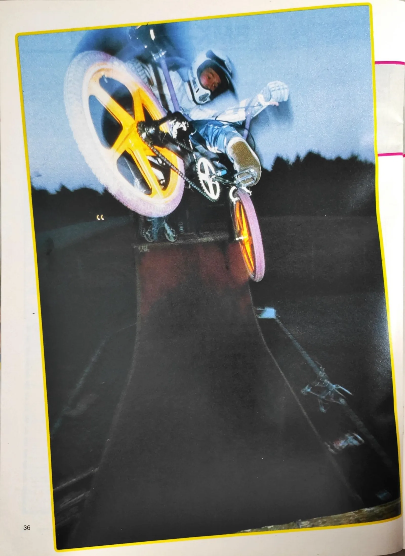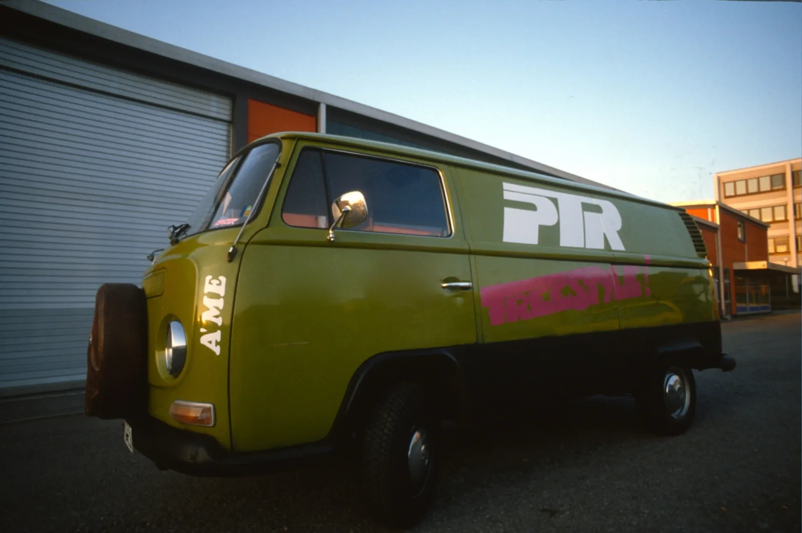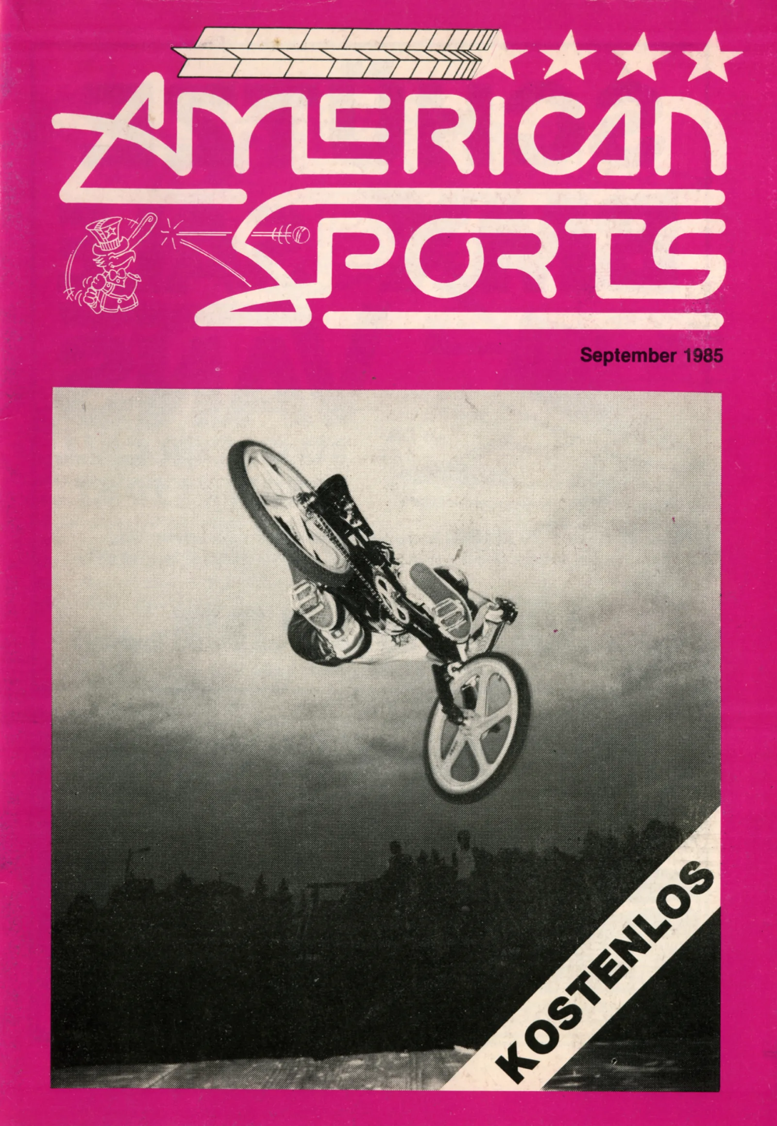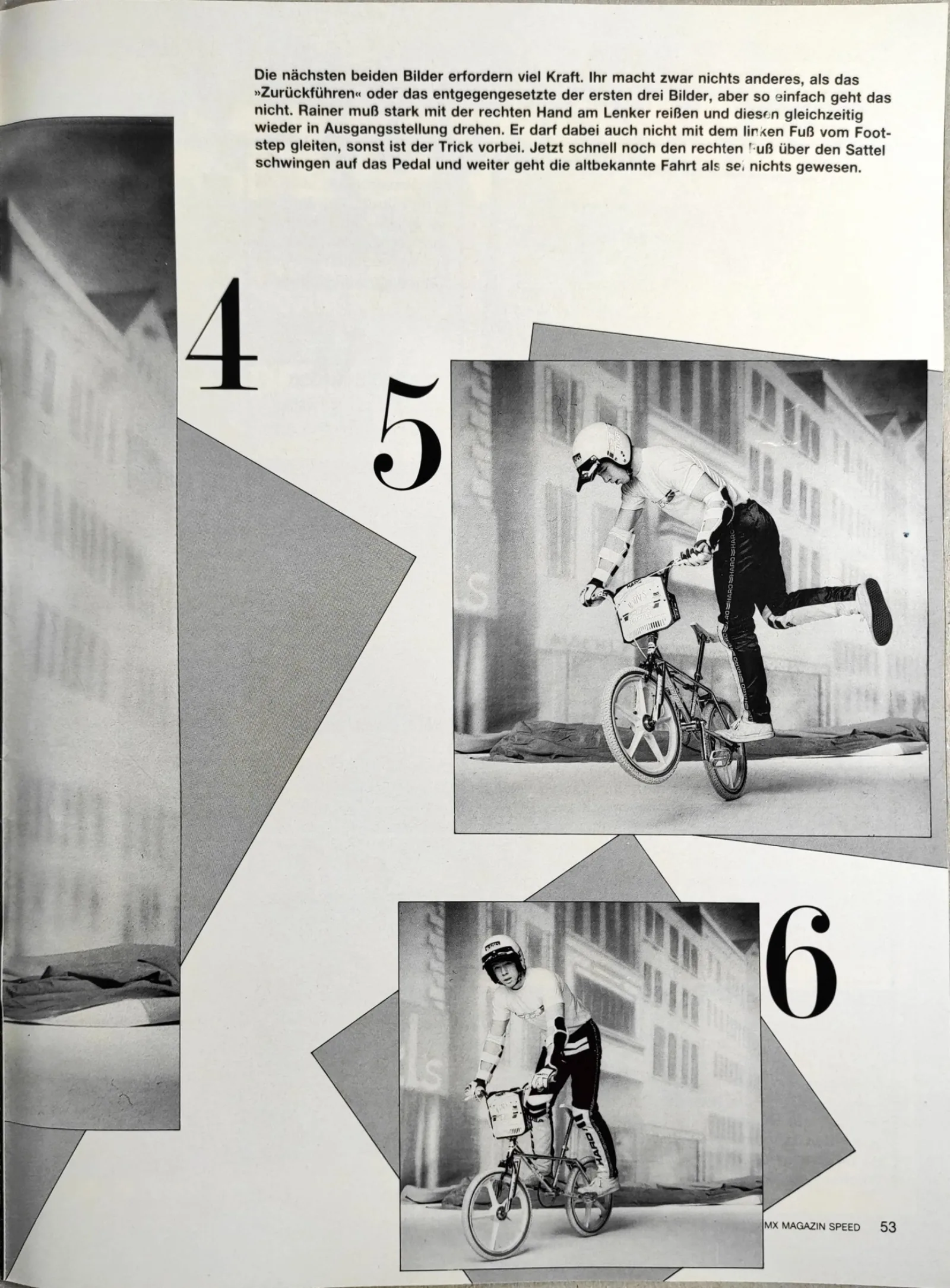 Back home, the plan for their own BMX brand took shape and PTR really took off: The three of them toured all over Germany in Patrick's parents' bus, filled the pages of "Speed" magazine and appeared on national television. Meanwhile, Rainer was looking for better training conditions at home: Around 1985, some skaters had built a half-pipe in the car park of the outdoor pool in Möhringen near Stuttgart, which consisted entirely of construction site timber apart from a few decking boards. This ramp was generously approved by an employee of the Stuttgart spa and baths authority, but when the good man visited the site for the first time about a year later and saw the dimensions of the 3 metre high ramp, the project was stopped immediately and the ramp was torn down. The famous poster from BMX Sport was also created on this ramp.