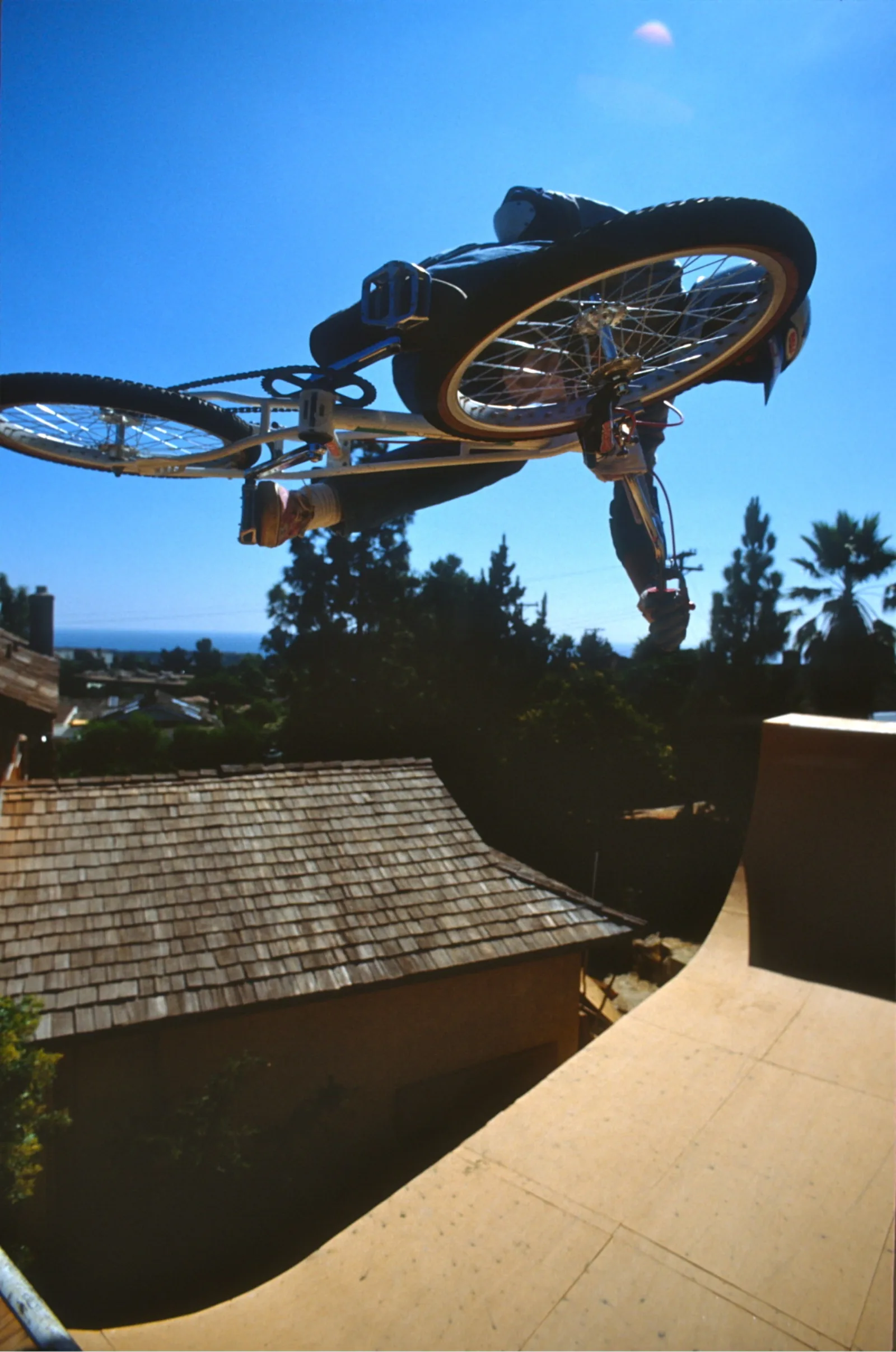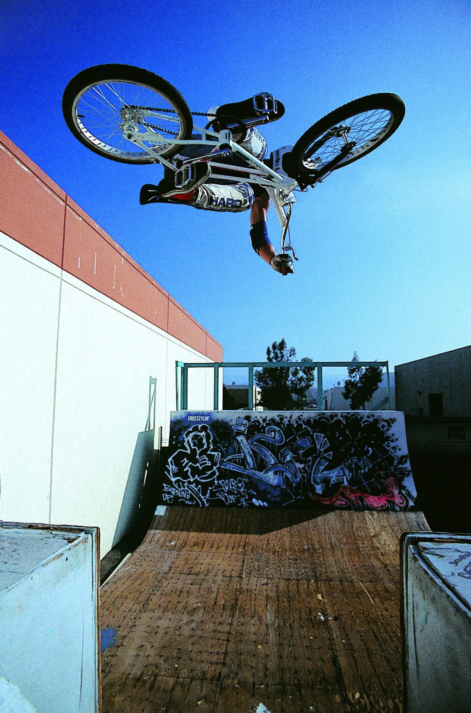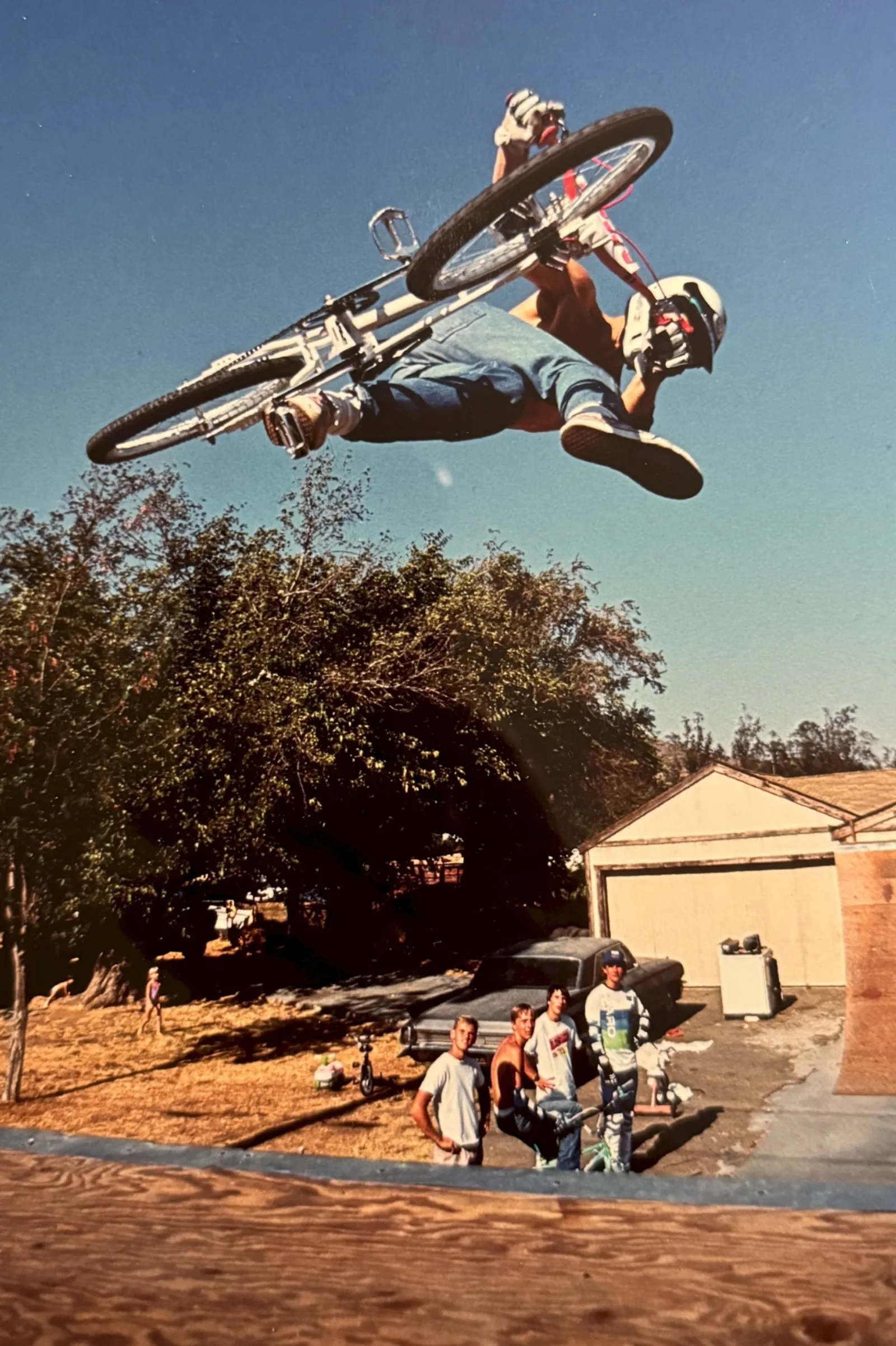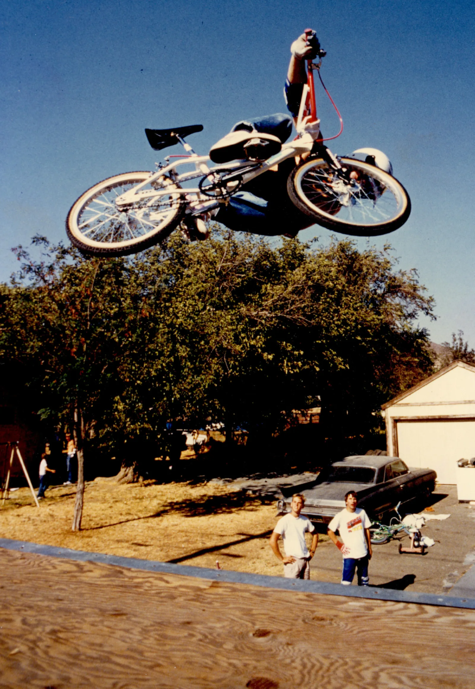 After a family holiday with Patrick's parents took the three of them to the Pipeline Skatepark in Upland, the fire was finally lit: Rainer rode the merciless holes of the famous skatepark and the ramp in the backyard of Wizard Publishing, where the venerable BMX Action magazine was born. They met Tony Murray and Eddie Fiola and rode a show for Bob Haro, who sponsored them directly.
