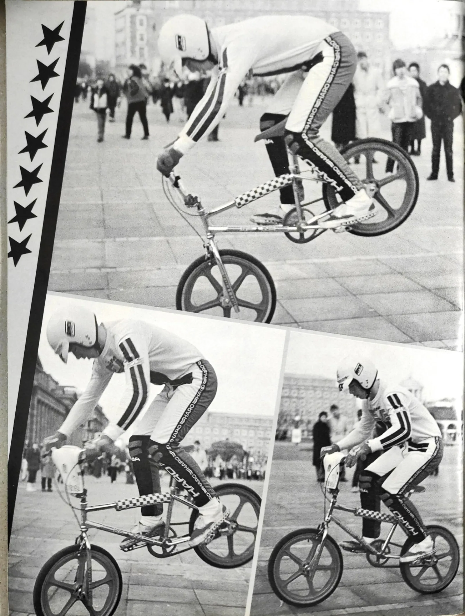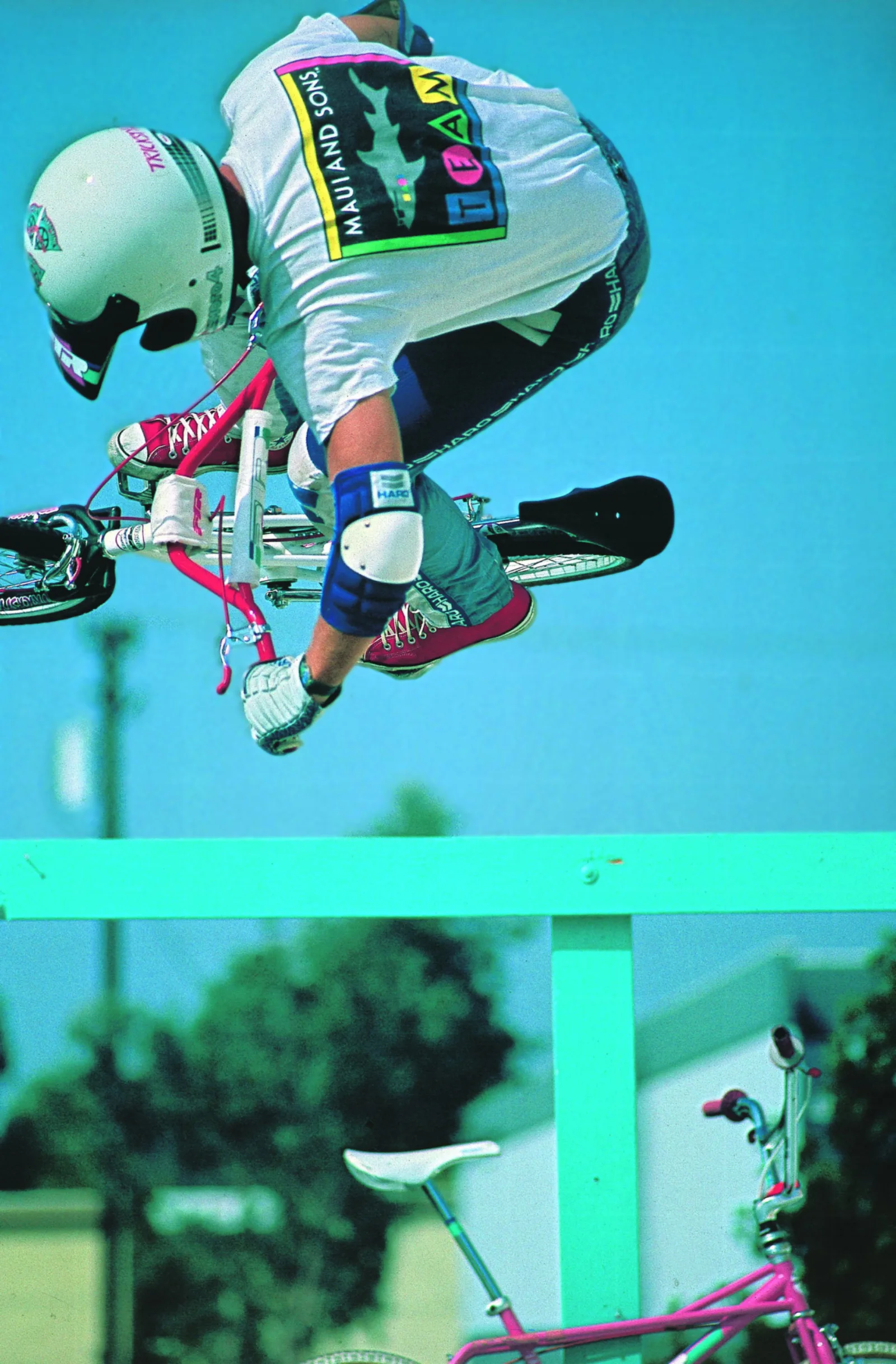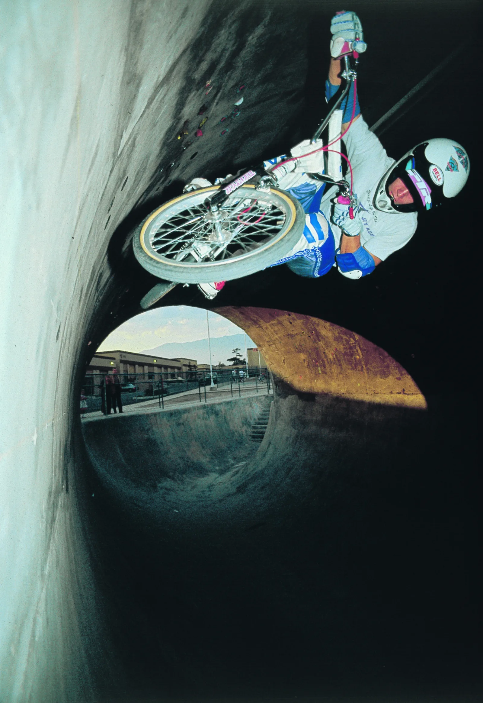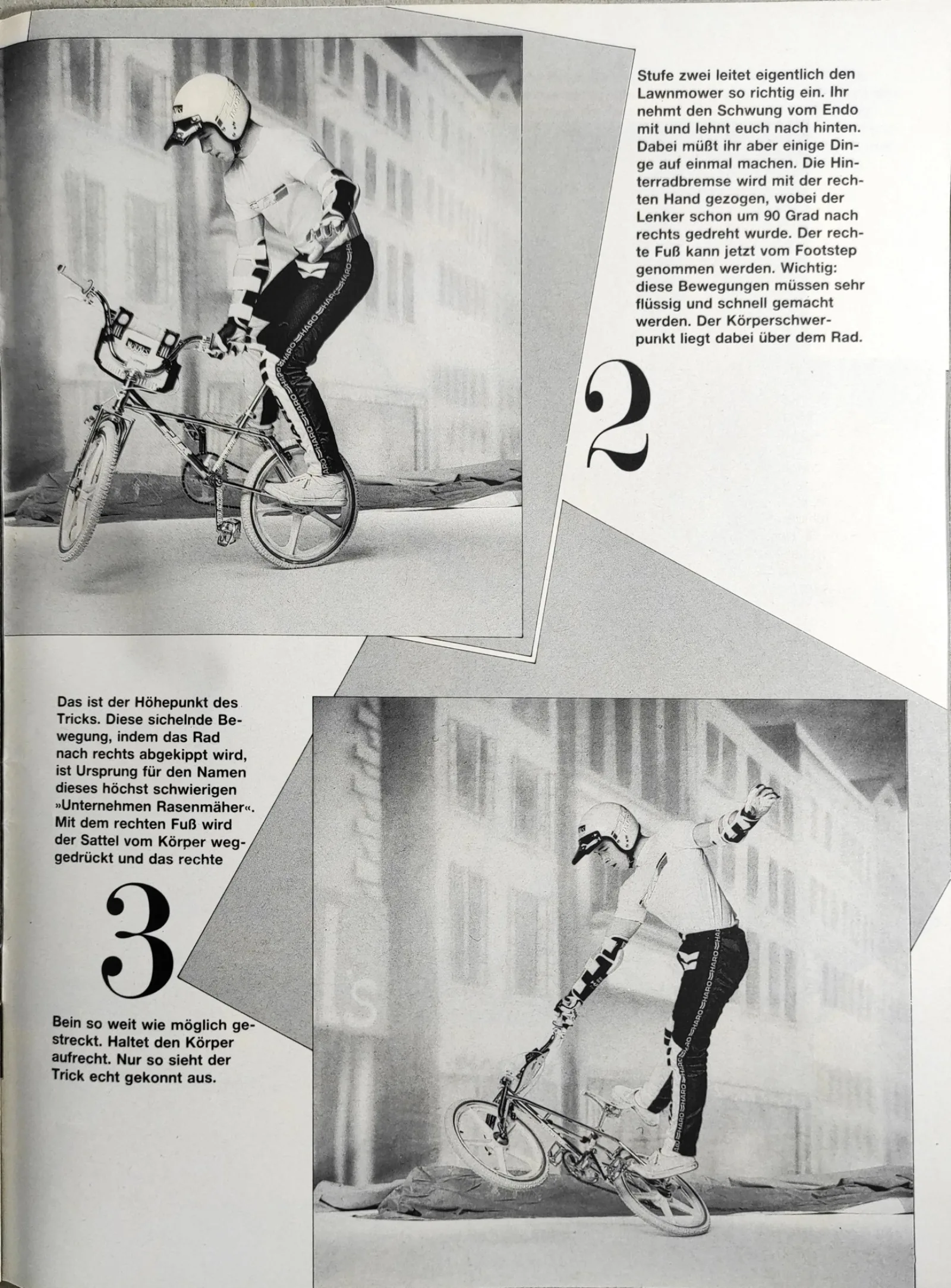 After a family holiday with Patrick's parents took the three of them to the Pipeline Skatepark in Upland, the fire was finally lit: Rainer rode the merciless holes of the famous skatepark and the ramp in the backyard of Wizard Publishing, where the venerable BMX Action magazine was born. They met Tony Murray and Eddie Fiola and rode a show for Bob Haro, who sponsored them directly.