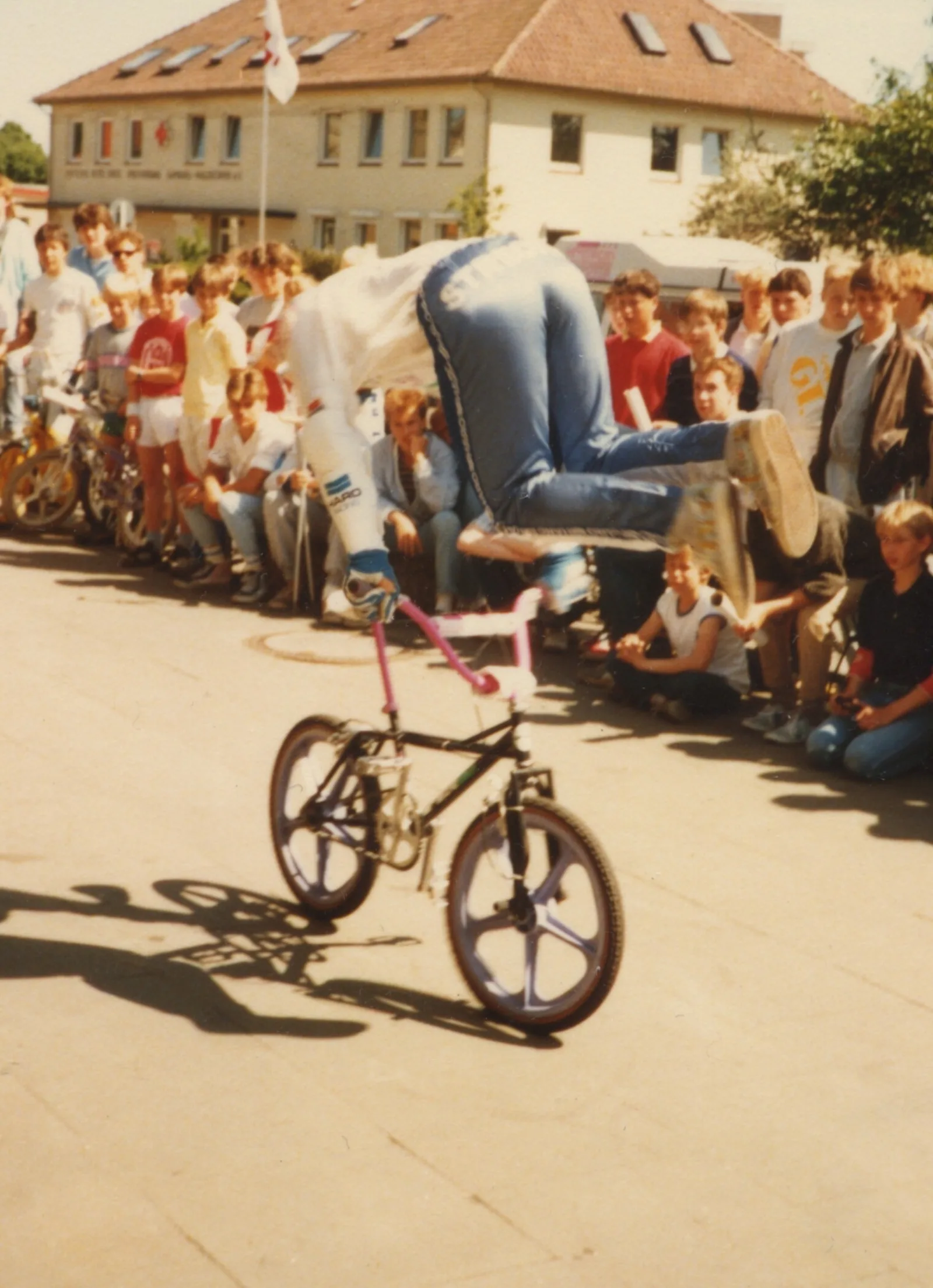 The three of them trained like crazy on their new ramp, which didn't always withstand the strain without complaint. They started riding their first shows in Stuttgart and the surrounding area and quickly made a name for themselves as the best freestylers in the area.