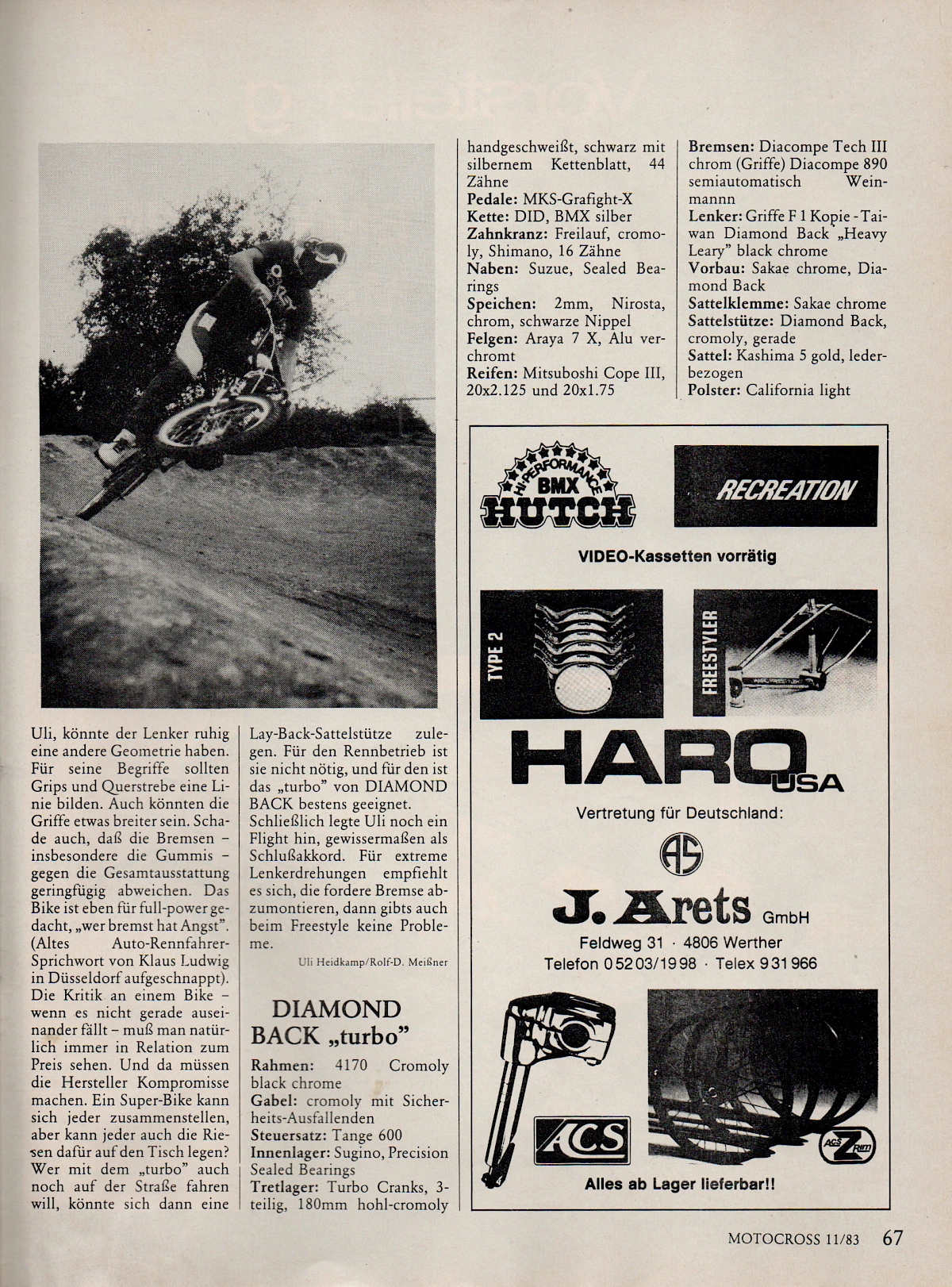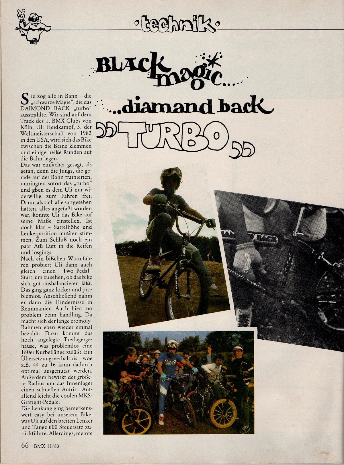 The resulting races in Cologne's Nüssenberger Busch, which were organised by the skateboard dealer "Blue Diamond", were probably the very first BMX races on German soil, even though they were still ridden on Bonanza bikes and the track consisted of not much more than two straights and a bend. Uli won the very first edition of these races in 1980, and when success followed at the first BMX races in Bremen-Vegesack, Herborn and Remagen, Uli and his friend Andreas Tittmann travelled to the Netherlands for a BMX race, making them the first German participants in a race abroad. That same year, they flew with Gerrit Does and Hans-Willi Zims to Detroit for the "Huffy Pro Spectacular", where Uli finished seventh, and then to Dayton, Ohio for the World Championships the following year, where Uli came third.