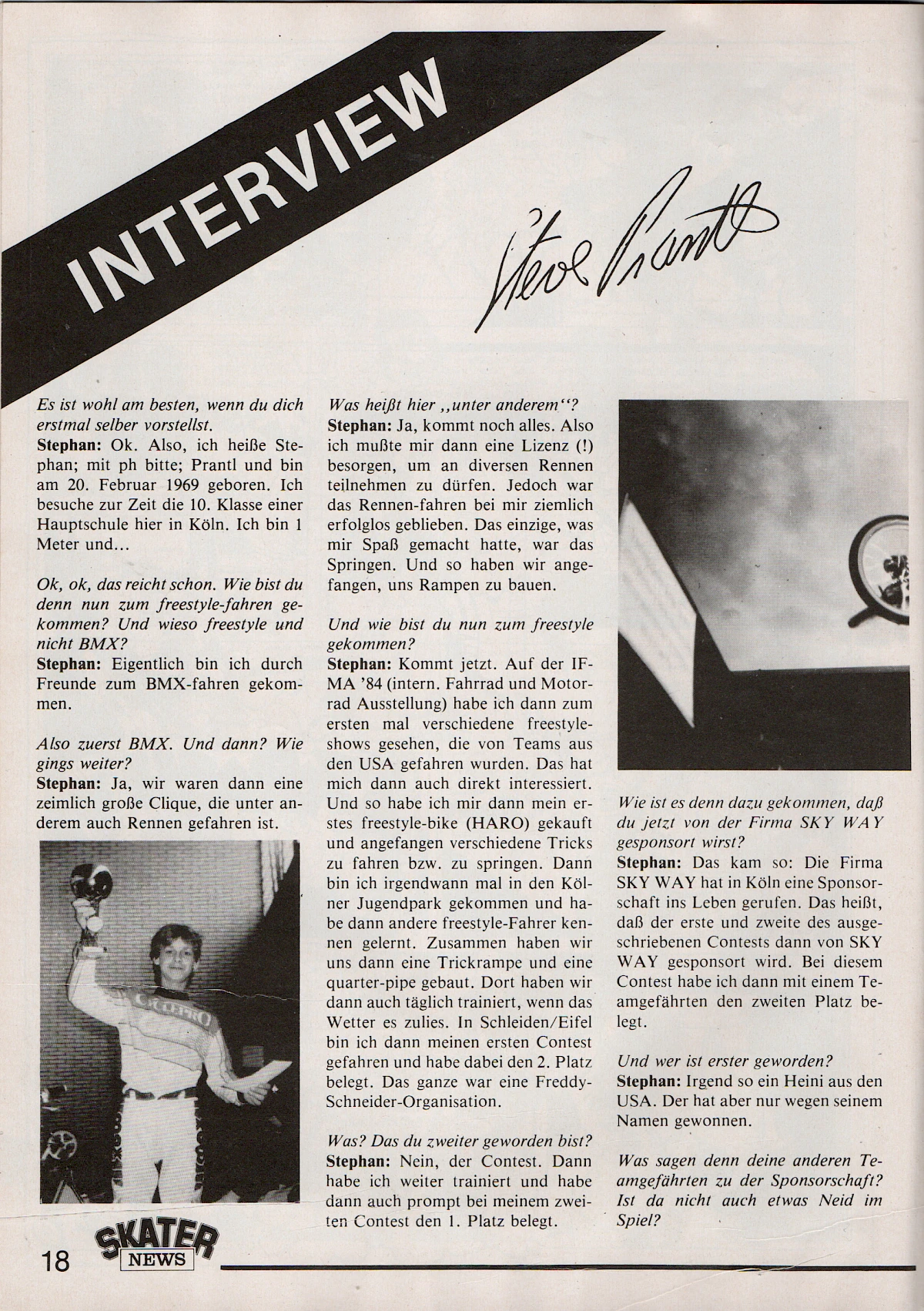 Aber auch seine persönliche Karriere kann sich sehen lassen. Von Anfang an dominierte er die Rampenwettbewerbe im Jugendpark, trat bei Shows mit dem PTR-Trickteam auf und reiste 1987 zur ersten Freestyle-Weltmeisterschaft nach England, wo er mit seinen Liptricks und seinem außergewöhnlichen Style den zweiten Platz belegte.